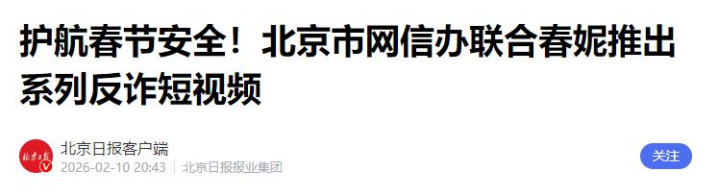 北京日报《护航春节安全!北京市网信办联合春妮推出系列反诈短视频》