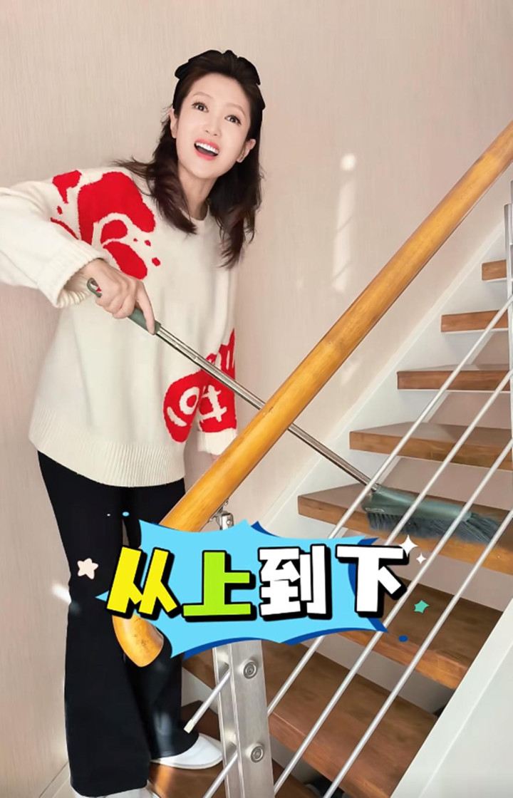 没有助理,没有滤镜,就是一个普通妈妈、普通妻子,在小年这天认真打扫家里。