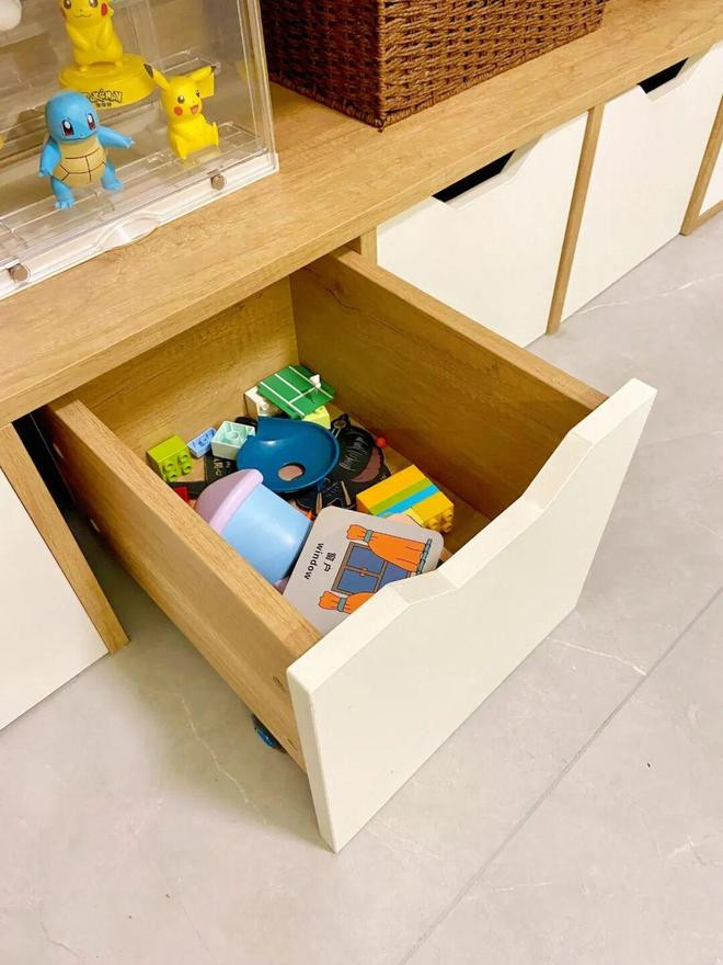 日常收纳玩具时,可以将柜子抽出来移动收纳,满了再推回去,免去了来回收纳的麻烦。