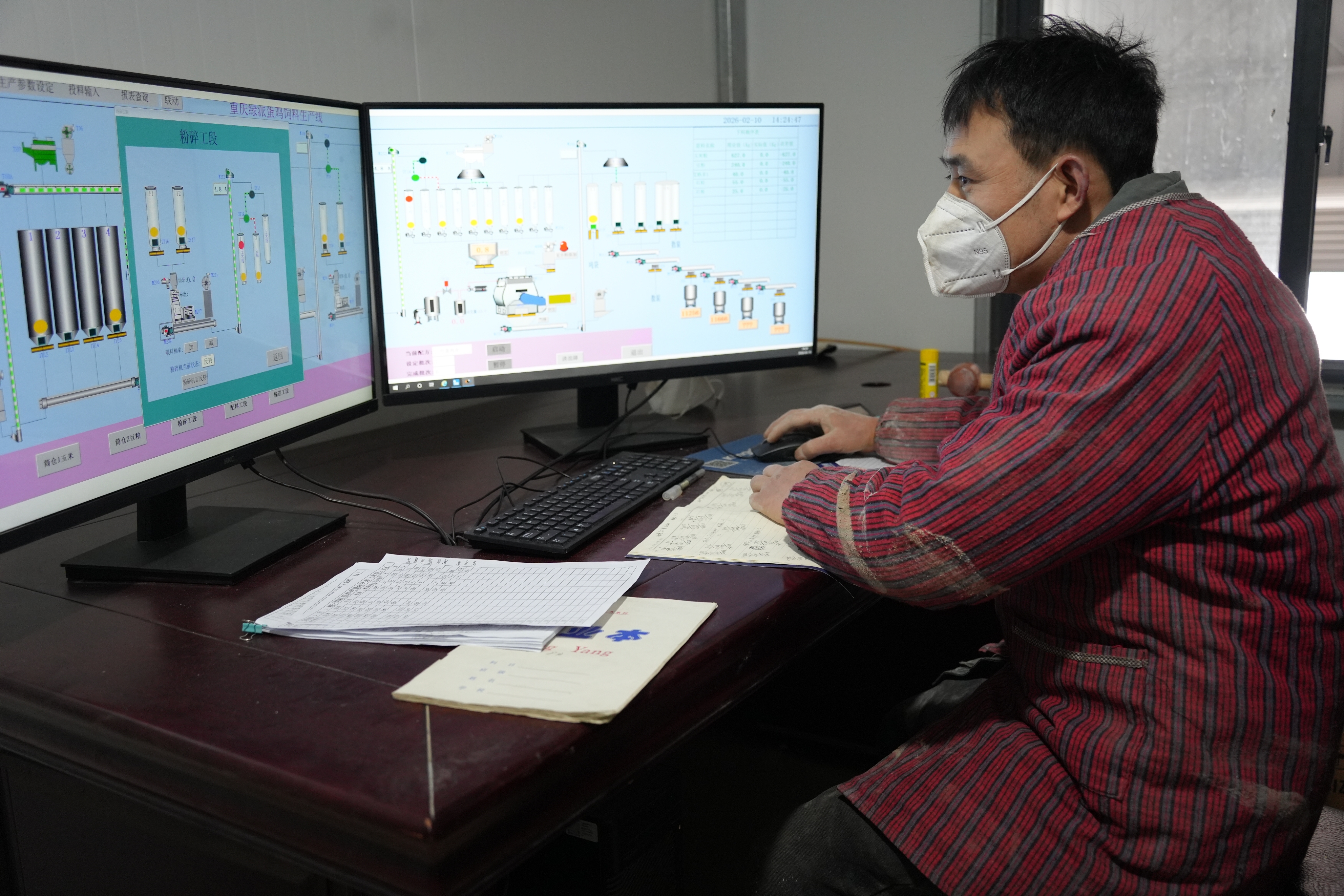 推开重庆绿派蛋鸡养殖有限公司控制中心的大门,一股混合着谷物清香的暖风扑面而来。