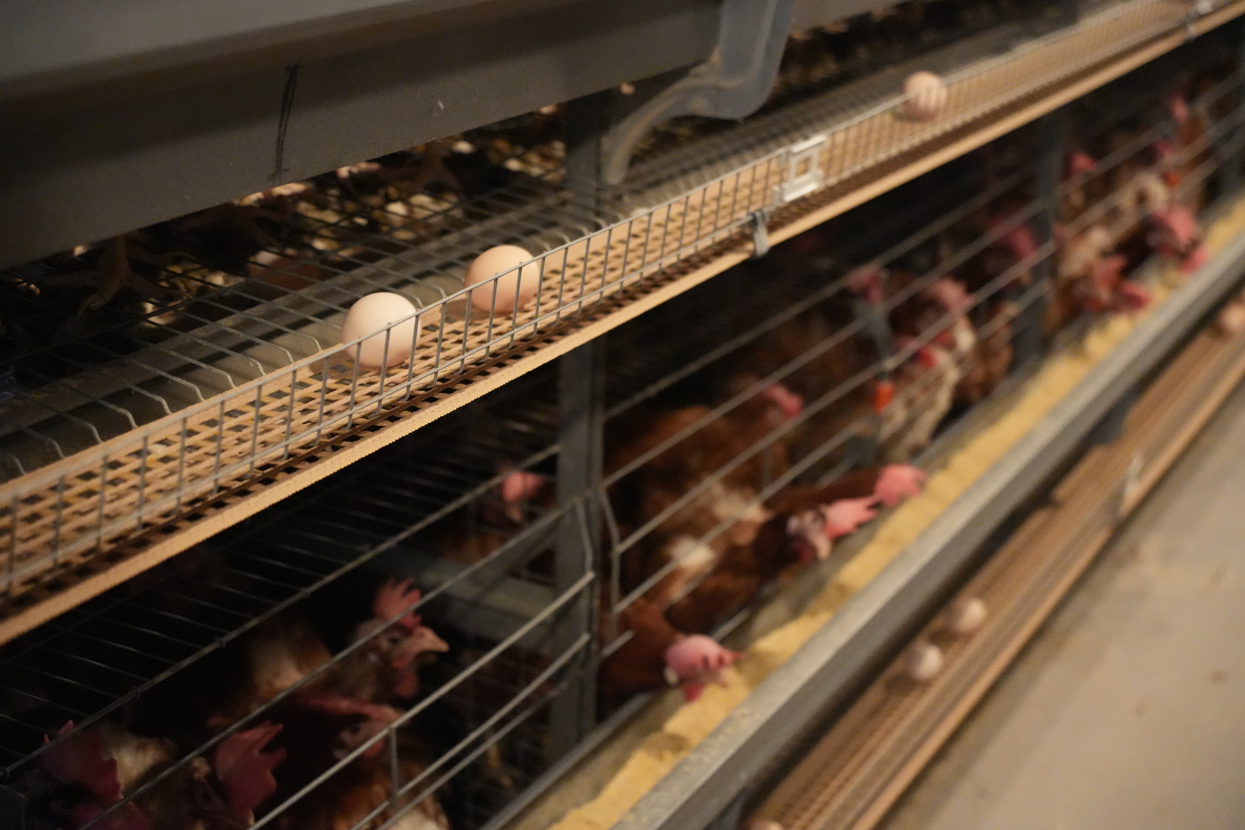 这是智能鸡舍内,新产的鸡蛋在传送带上待检。新华社记者 田金文 摄